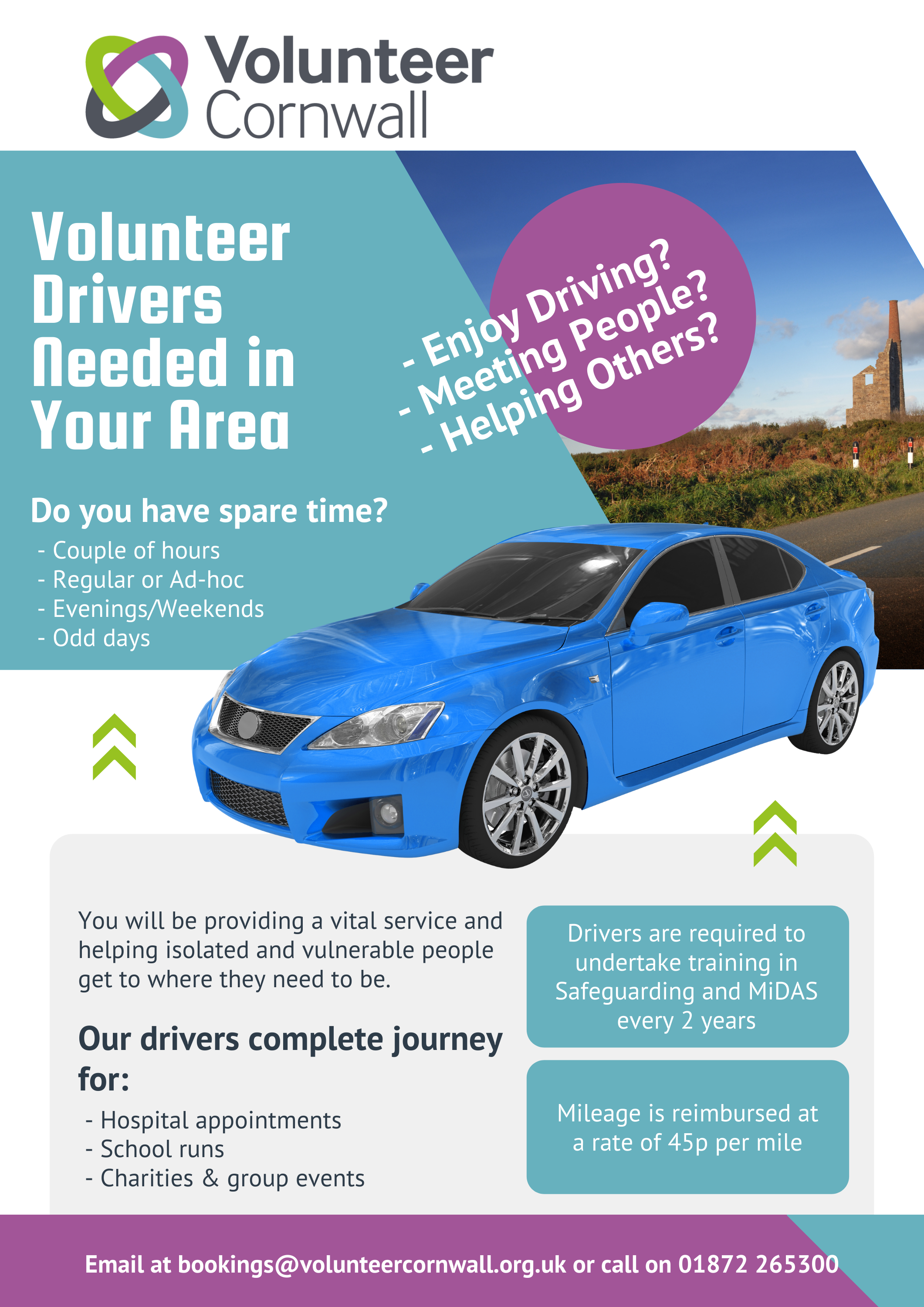 Volunteer Cornwall are looking to add drivers to their team in our local area. Download Notice Notice Date: 03/10/2022